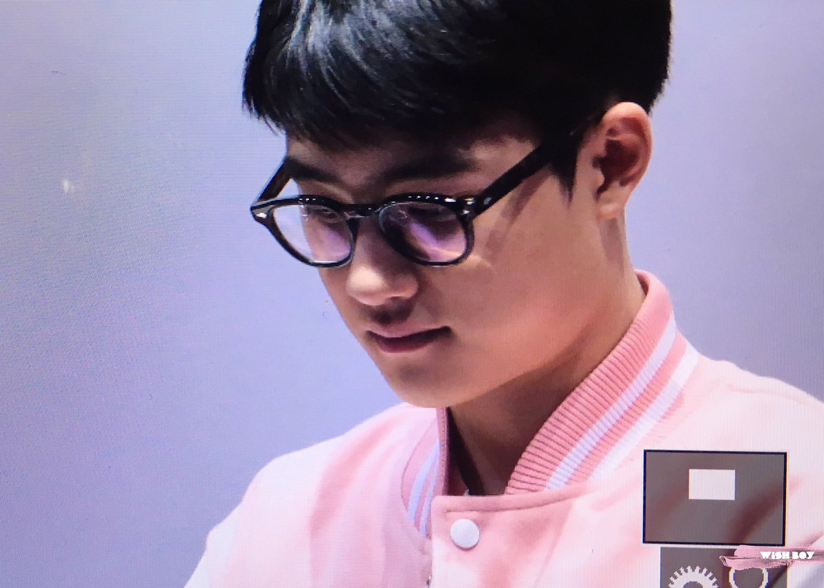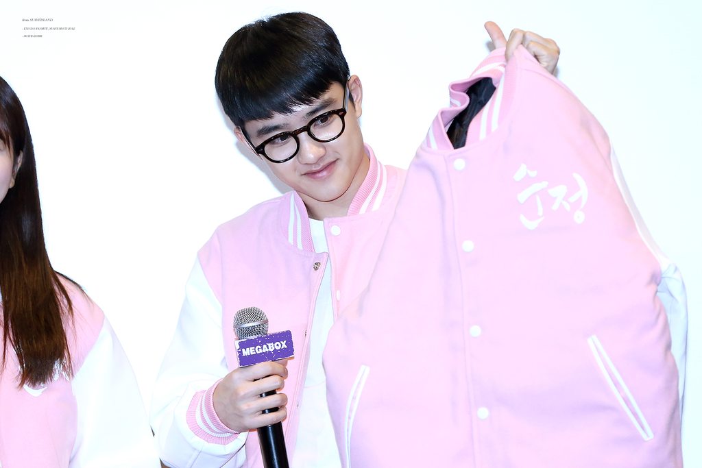 最近忙着宣传纯情进行的最后两场舞台问候中暻秀和其他演员们都穿了粉红色的棒球外套~